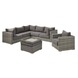 Met de Jaru lounge dining set hoef je geen moeilijke keuze meer te maken tussen een dining set of een loungeset. Deze mooie en ruime lounge dining set heeft het allebei! Deze set is vervaardigd uit onderhoudsvrij aluminium met daaromheen weerbestendig wicker in de kleur organic grey, waardoor je het hele jaar kunt genieten van deze mooie lounge.